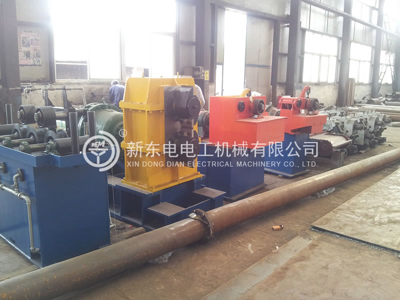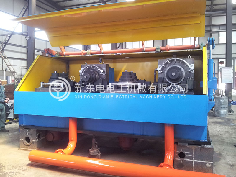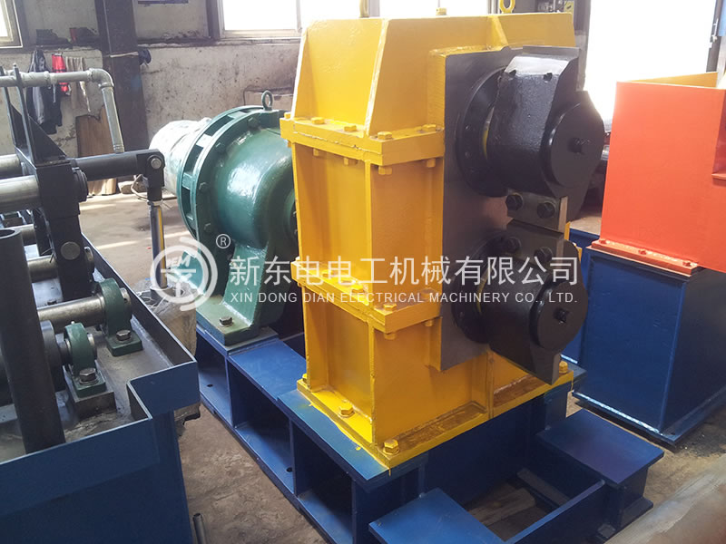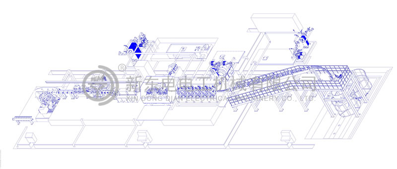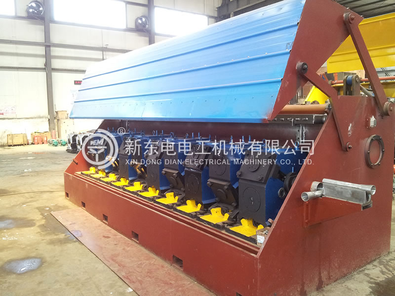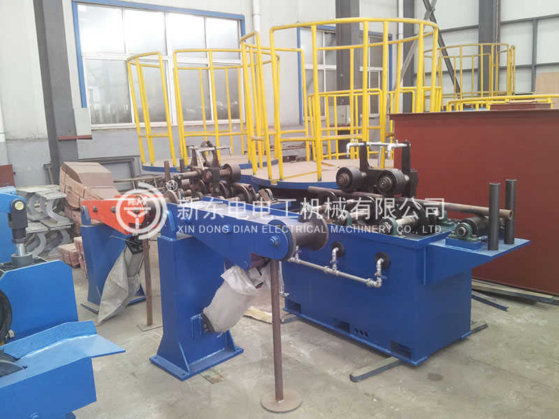 本生產(chǎn)線主要由四輪式連鑄機(jī)(專利號:ZL 2009 2 0037329.X; 澆鑄機(jī)用零點(diǎn)澆鑄裝置,專利號:ZL 2009 2 0037330.2)、校直機(jī)、前牽引機(jī)、滾剪機(jī)、鑄坯過渡支撐裝置、喂料機(jī)、粗軋機(jī)、精軋機(jī)、鋁桿冷卻淬火裝置、鋁桿甩桿成圈裝置、收線小車及收線筐裝置、連鑄連軋生產(chǎn)線電氣控制系統(tǒng)、連軋機(jī)潤滑油系統(tǒng)、連軋機(jī)乳液循環(huán)系統(tǒng)等組成。